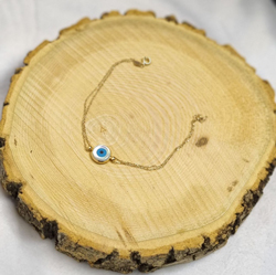 دستبند طلا چشم نظر گرد زنجیر دوبل