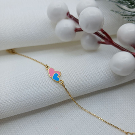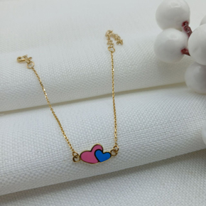 دستبند پلاک مینادار طلا دو قلب